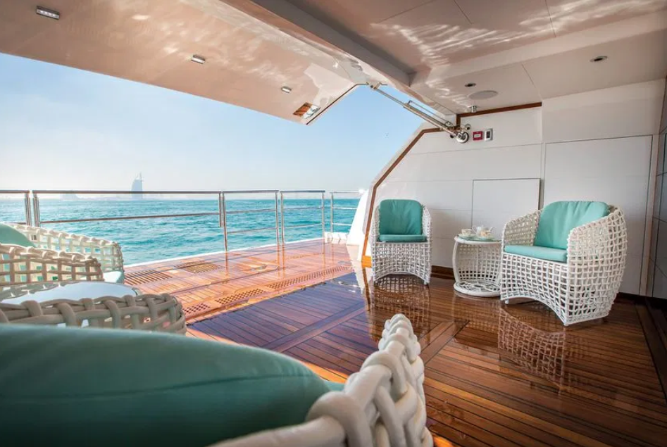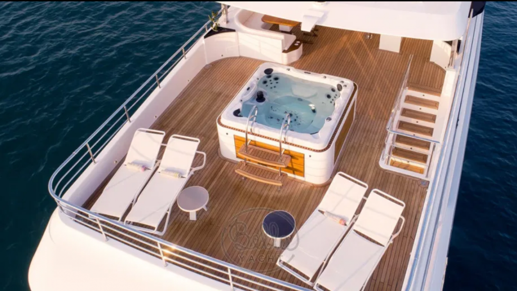 Baseado no modelo Gulf Craft 135, o iate, com uma cabine VIP e 4 cabines padrão, oferece muitas comodidades, como a ampla sala de estar com vista direta para a água na parte traseira do iate, duas varandas no deck principal e ainda uma cachoeira e uma jacuzzi localizadas no terraço do deck superior. Isso além de cinco banheiros, jacuzzi, e uma cozinha equipada. Seus motores MTU M96, com potência de 2 X 2600 Hp, permitem uma boa tração do navio para permitir que você se considere em cruzeiro!