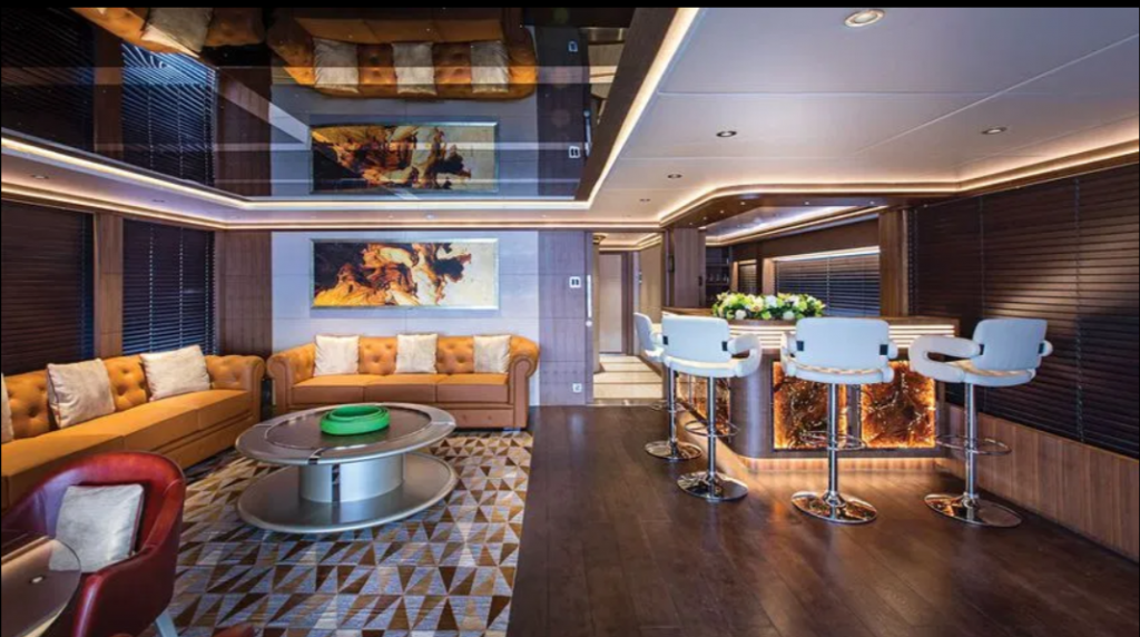 Com um comprimento total de 43 metros, este monstro marinho oferece acima de tudo um nível estupendo de personalização e uma infinidade de equipamentos de entretenimento dificilmente comparáveis a outros modelos neste segmento do mercado. O enorme iate de 398 toneladas está listado como “o maior de sua classe”.