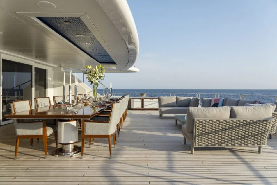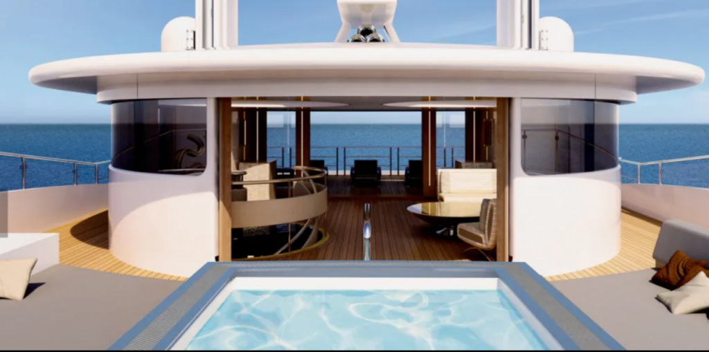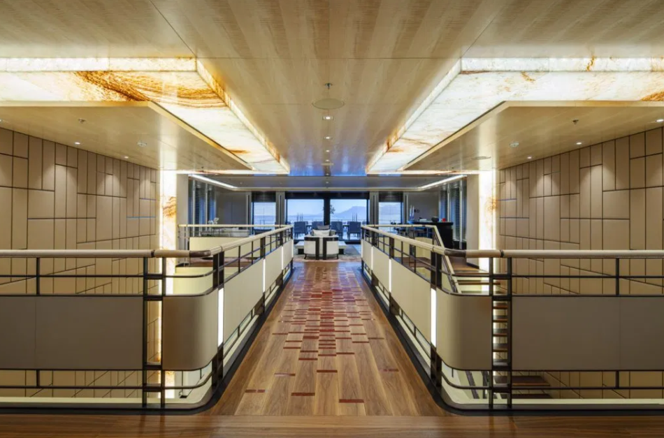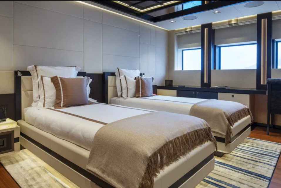 Capaz de acomodar 12 pessoas com conforto incomparável, o giga iate conta ainda com 25 tripulantes e duas cabines para staff privativo. O bar é digno de um palácio parisiense. O pátio na parte frontal do barco é similar à um mergulho em um sonho. Mas o mais impressionante é a suíte master com 80 m2 cujo design, como o resto do Illusions Plus, é de tirar o fôlego.